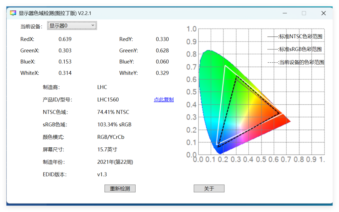 该工具主要用于检测显示器的色域情况: