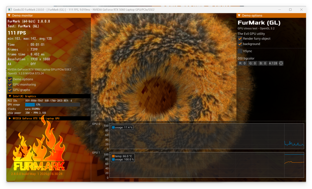 这里着重讲一一下 FurMark 和 FurMark2,即大家熟知的甜甜圈: