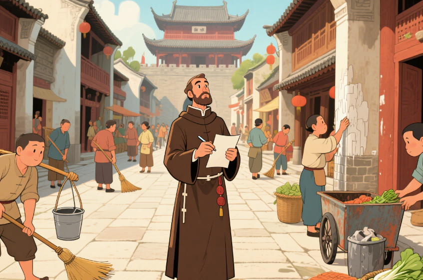 他惊异地看到,城门一开,挑着木桶的汉子沿街道挨家挨户吆喝“收粪咯”,家家户户递出马桶,收粪的人清点数量、称重量、付了钱然后将桶刷净送回;破布、碎纸、菜头也有人来收,一条街刚扫完,另一帮人便推着车子,运走最后那些垃圾。