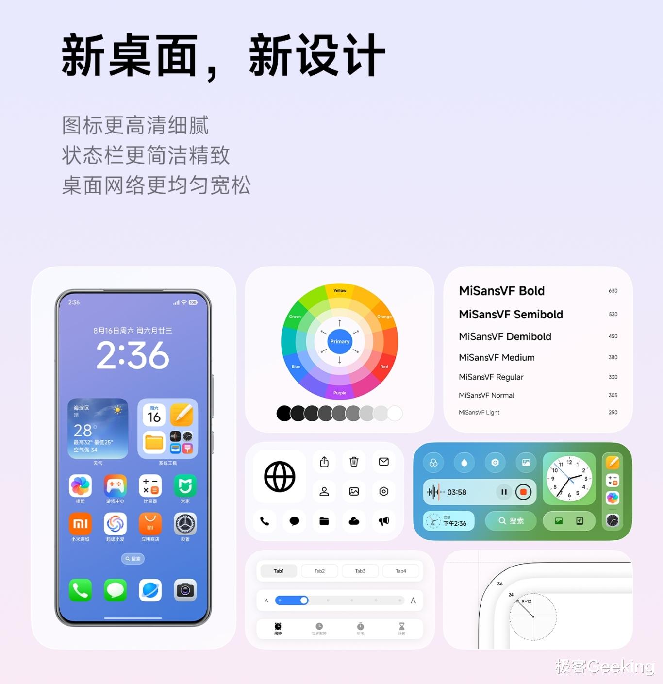 小米澎湃OS 3 桌面 UI 全新设计,主打生命感美学再升级,不仅图标更高清细腻,状态栏更简洁精致,而且桌面网络也更均匀宽松。