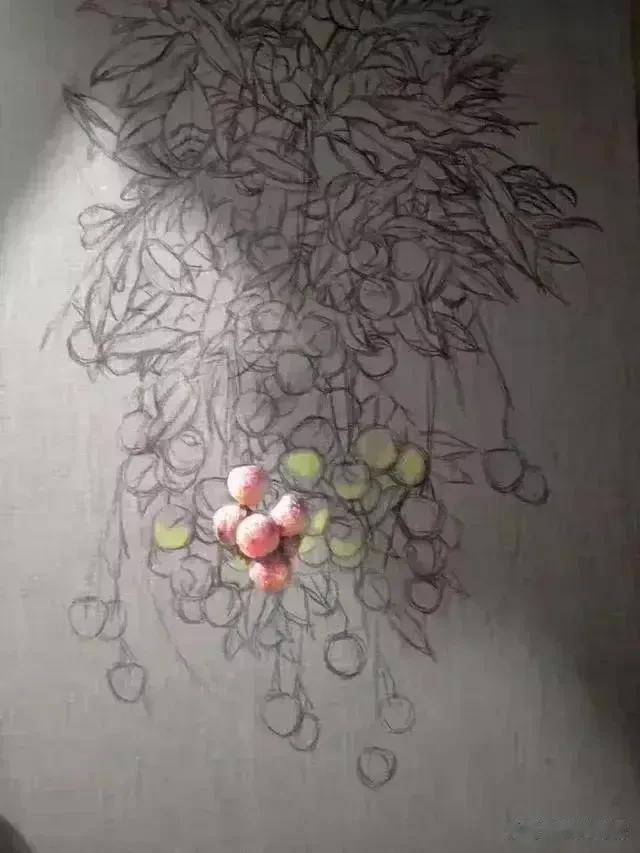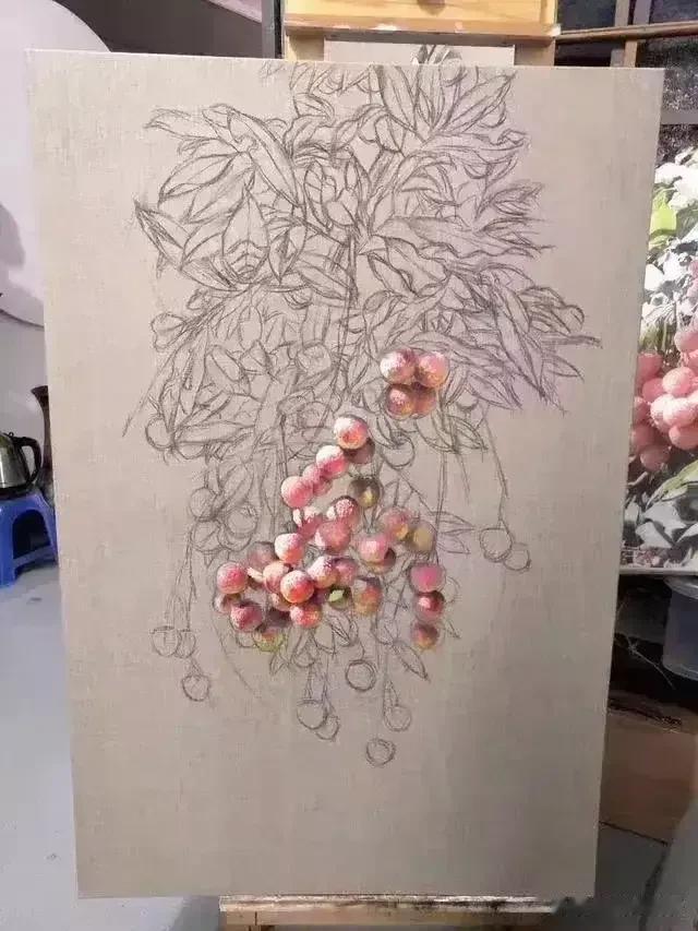 绘制油画荔枝需兼顾形、色、质的精准表达,以下为系统技法流程: