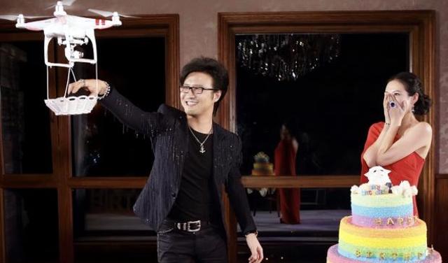 之后在章子怡的生日派对上,他更是用大量的无人机表演极其浪漫的节目。