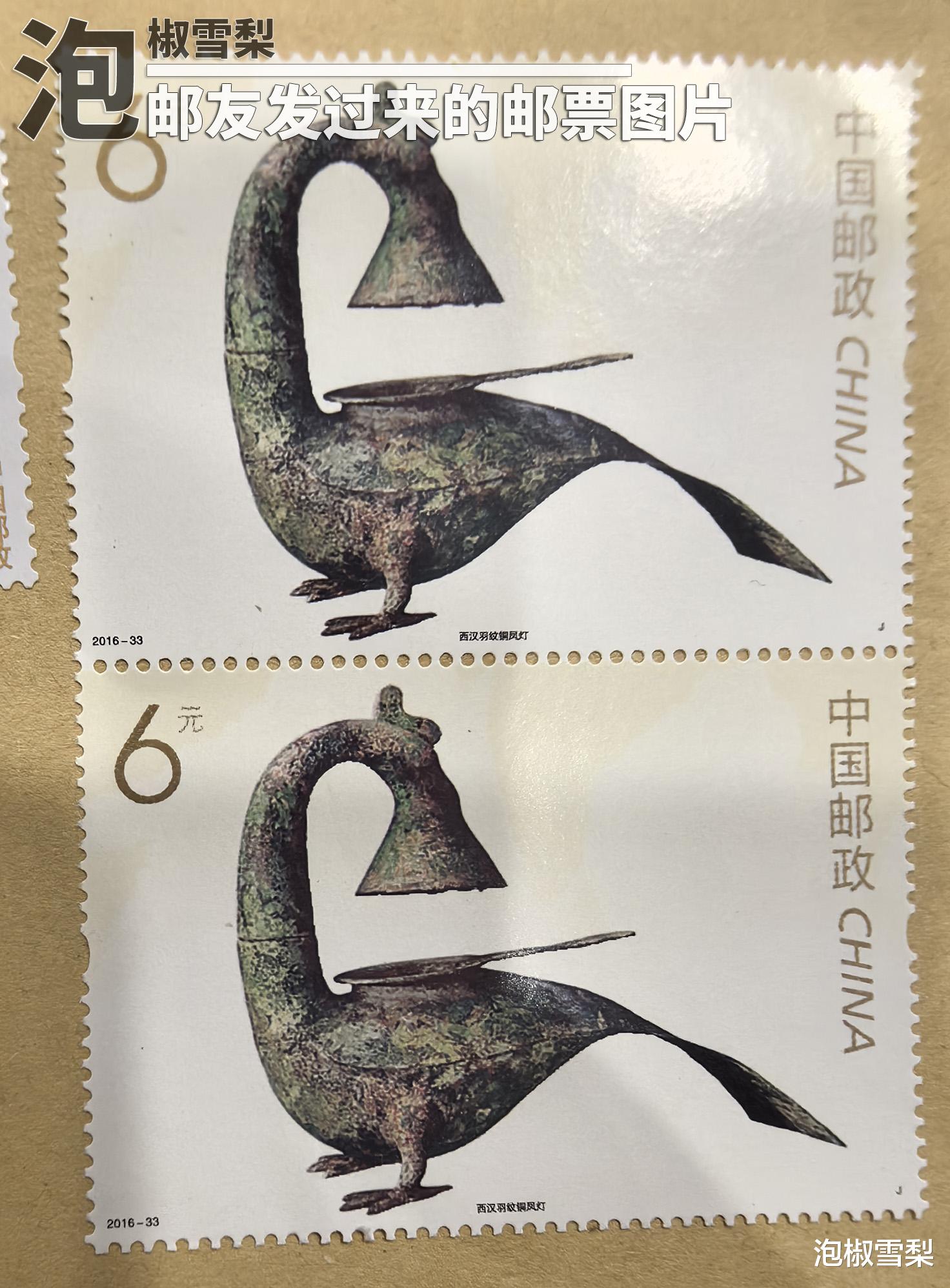 同样的道理也出现在2016年的“亚洲邮展”上,这套邮票发行时仅有一种小型张,邮友的图片上是两枚小型张内芯连在一起的版式,而正式发行的邮票中没有这种规格,所以说即使不用看细节,也能确定这两套为假邮票。