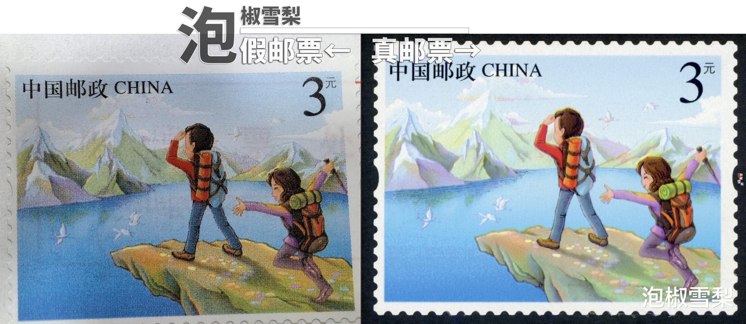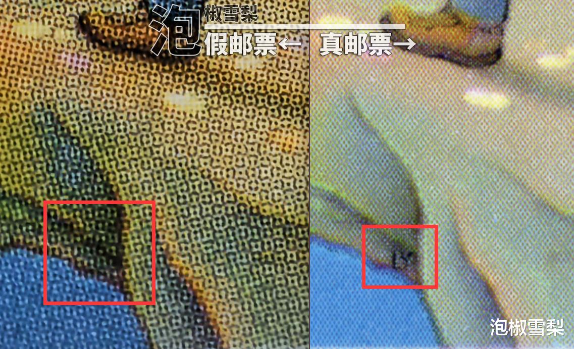 真假邮票放在一起时,还是比较容易发现哪枚是假邮票的。