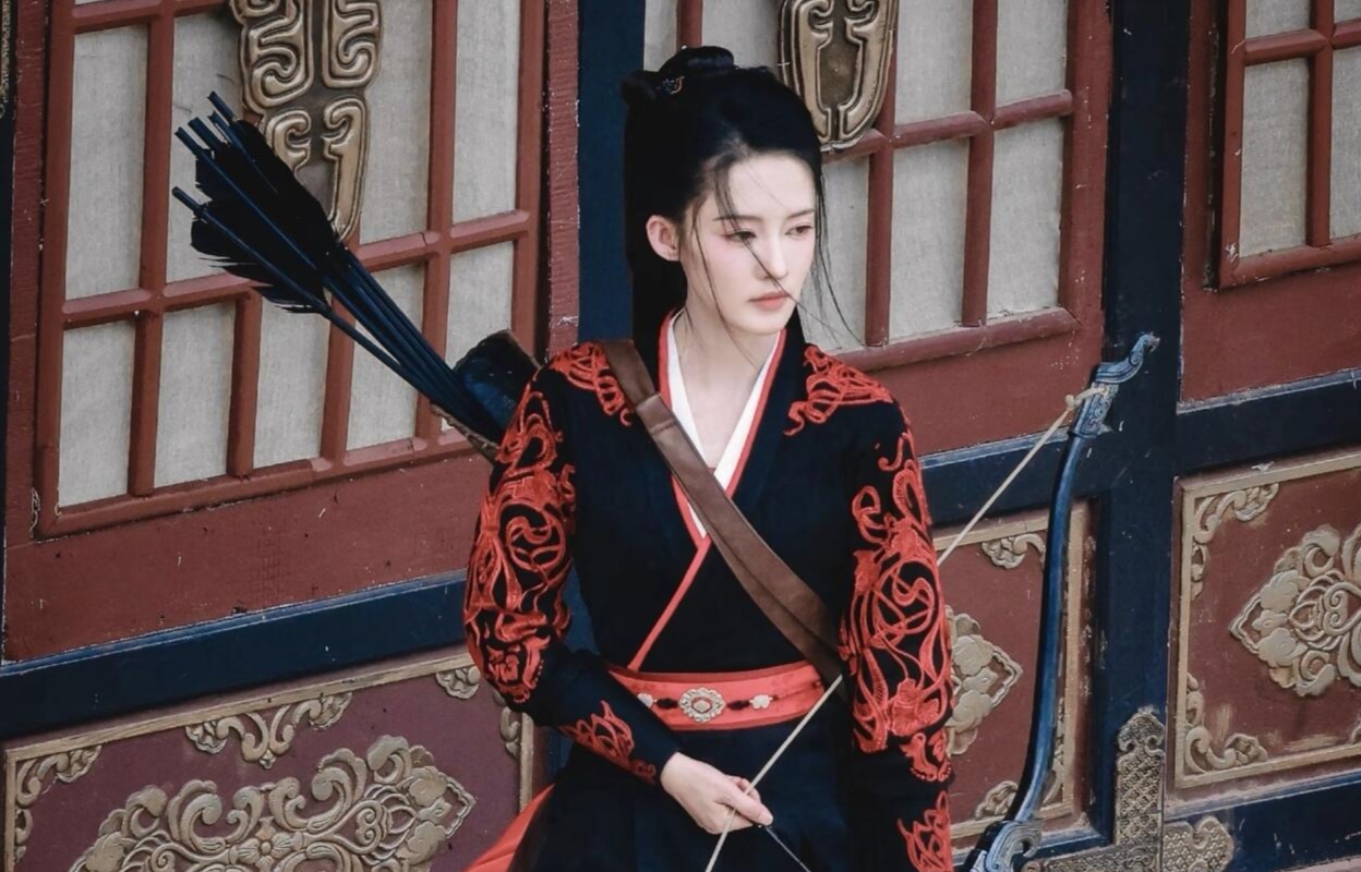 剧集一开头,她饰演的锦绣国女战神付一笑,一袭红衣猎猎作响,在全军覆没兵临城下的绝境中挽弓搭箭。