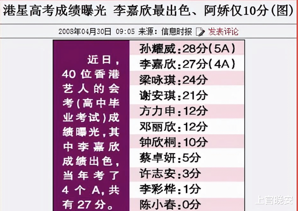 类比考26分的林夕去了港大,李嘉欣的成绩去读顶尖大学是没有问题的,这还是她半工半读的情况下考出来的,如果不是后来参加选美进入娱乐圈,凭借她的脑子和美貌在其他行业肯定也混得不差。