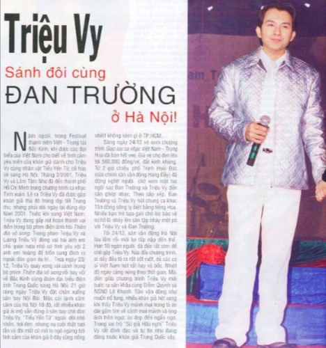 2001年12月《还珠格格》主演团队受越南总理特邀参加中国访越代表团,作为中国政府派去的文艺交流大使首次访问越南,越南总理、文化部长Tran Thi Tam Dan(越南青年及教育部代表)以及当年红遍越南的偶像歌手丹长前去接机。由此也能看出,丹长在越南的火爆程度以及大众心中的地位极高,毕竟能够被称为“越南刘德华”,颜值与实力自然都是数一数二的。