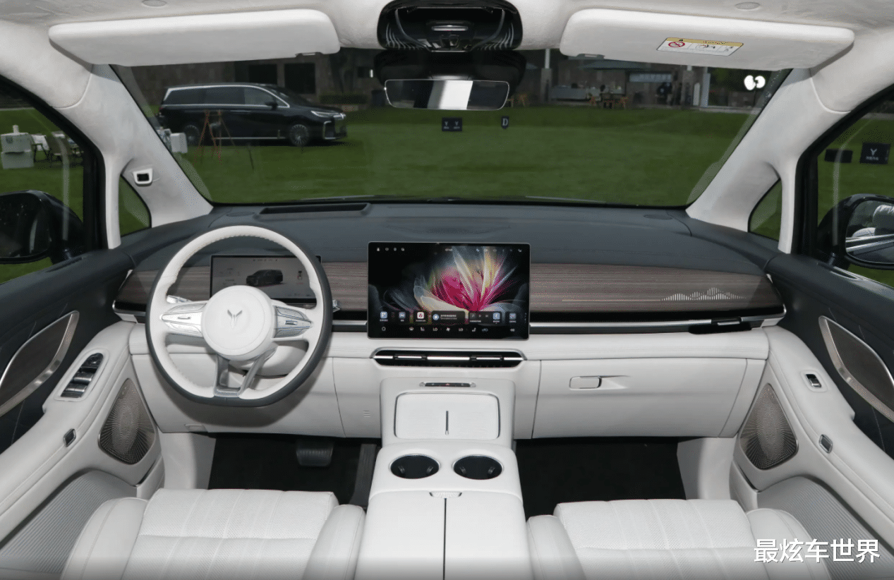 而来到后排,新车两张宽大的航空座椅配备了6英寸的扶手屏,并且中排座椅的扶手,以及腿托也具备加热功能,再加上17.3英寸的吸顶屏幕,以及13L的车载冰箱和两张后排折叠桌板,这些也都进一步提升了用户的乘车体验。