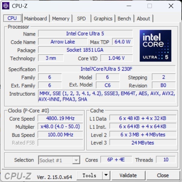 处理器:Core Ultra 5 230F