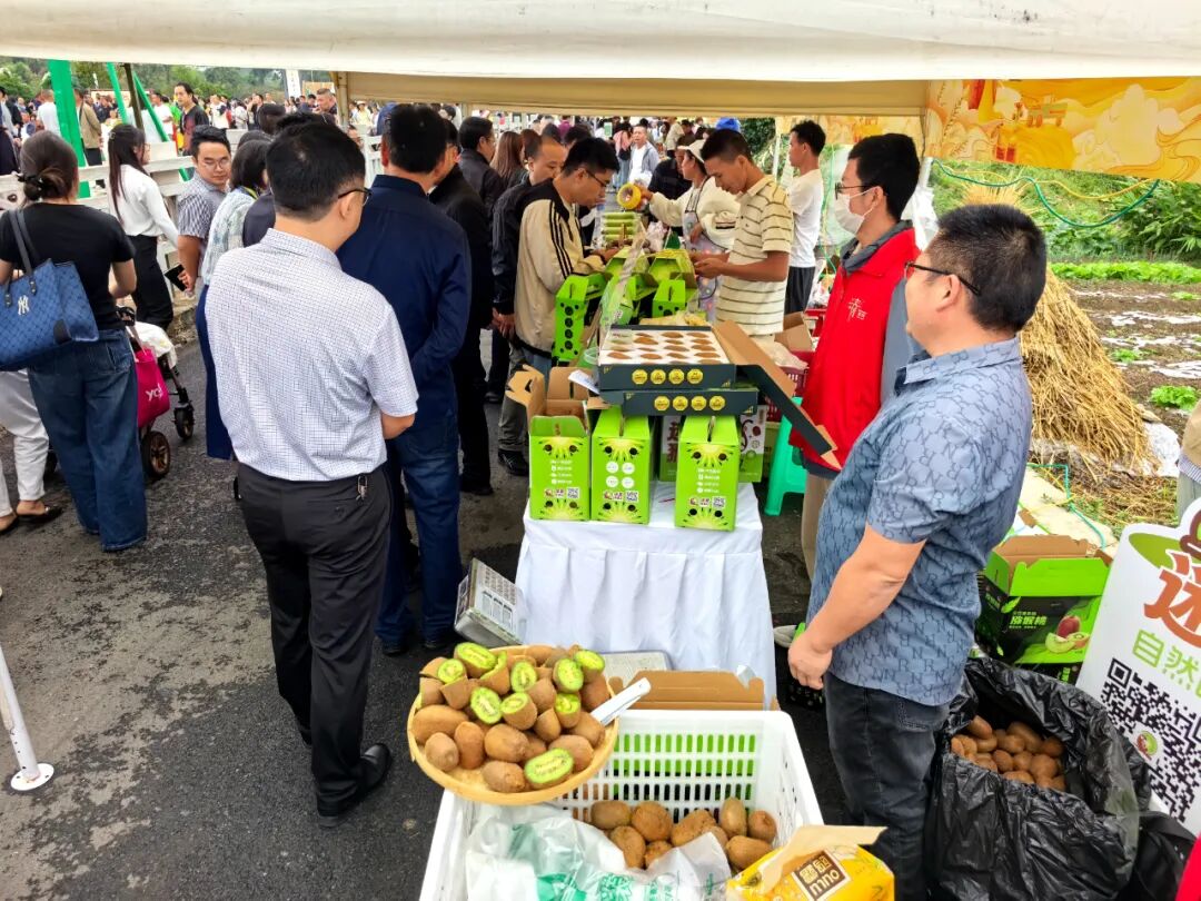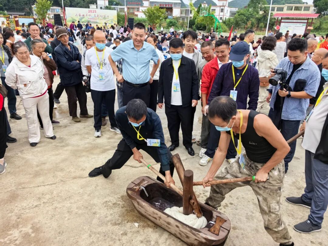 主会场周边,一系列体验活动让参与者沉浸式感受到丰收的乐趣。农产品展示区沿路排开数十个整齐的摊位,宛如一条多彩的农产品长廊;抓鸭摸鱼区域欢声笑语不断;打糍粑体验区,米香浓郁,游客们轮番上阵,挥舞木槌,合力捶打蒸熟的糯米;线下、线上销售区,各合作社、农业企业积极推介,与采购代表洽谈,初步形成了一批意向订单。