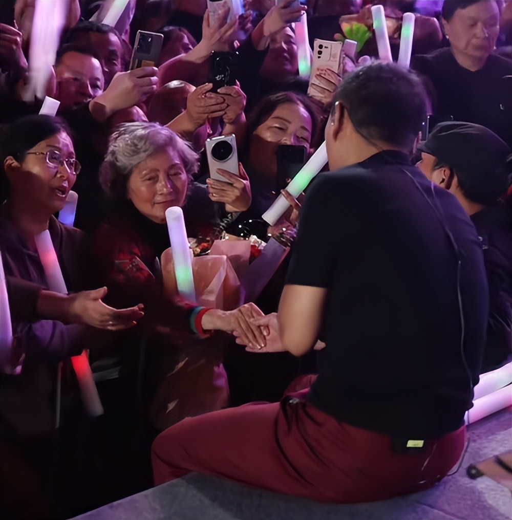 看到这一幕,台下还有大妈嫉妒的直落泪,这一幕真的是非常感动,这么多年过去了他还有这么多喜欢他的粉丝。