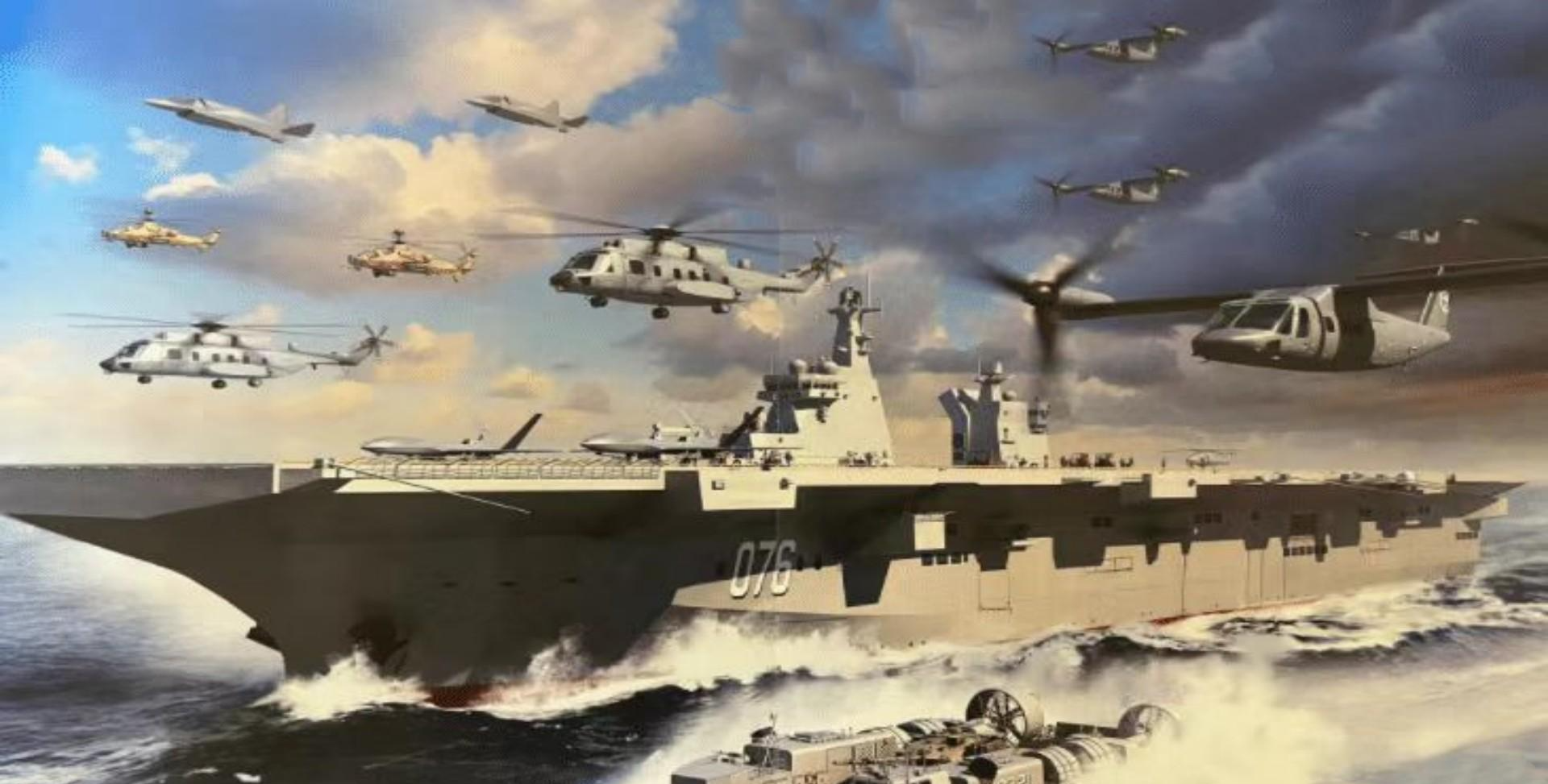 最后咱们来做一个总结,也可以说是076将来的展望。076型新概念航母成功建造,标志着我们中国在传统两栖攻击舰上取得了重大突破进展。076对传统两栖攻击舰已经产生了本质或者颠覆性的变化,意味着对我海军将来作战模式都产生了深刻的变革。076作为一款先进多功能的战舰,不仅提升我海军的投送能力,也提升了应对低烈度冲突的能力。无论在外海保护我方利益,还是维护我们的海洋权益等方面,076都将会发挥着巨大的作用。因为076除了搭载投送登陆作战部队,还可以搭载更多有人机跟无人机进行作战。尤其是无人机的应用,可以在一定程度上提升作战效率,更重要的是减少人员伤亡,让登陆作战方面更加高效灵活。