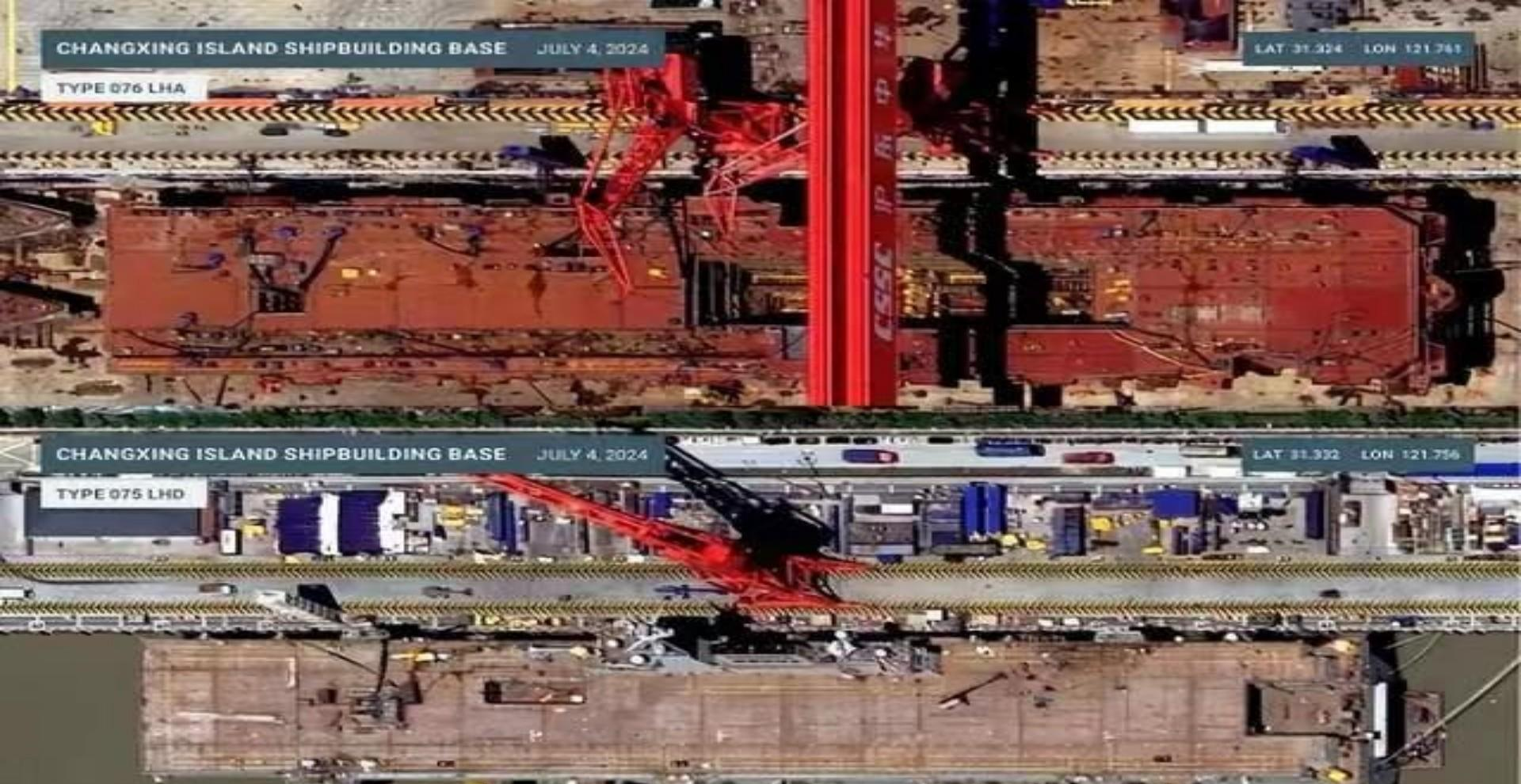 除了076之外,也能看到第四次海试归来的福建舰停在另一侧的港池内。不过暂时也都看不出什么新细节,只有两架等比例的舰载机模型留在舰艏甲板上。老夫用自己的大拇指跟食指戳图片,把图片放大仔细看了看,前端那一架疑似歼15T或者歼15D,后面那一架明星是歼35。而福建舰的左前方的一艘大船倒是相当扎眼,可以确定这就是咱们第四艘075两栖攻击舰。不过对于如今而言,有了福建舰跟076之后,075的关注度类似几乎没有了,就类似被军迷们“抛弃”了一样。如今人们的关注度,大部分都已经转移到福建舰跟076以及后续航母身上了。甚至就连二批次的055建造进度都要比075的关注度更高,要知道055型驱逐舰那可是属于拥有叫板美航母战斗群实力的存在,所以这个关注度自然不会低。