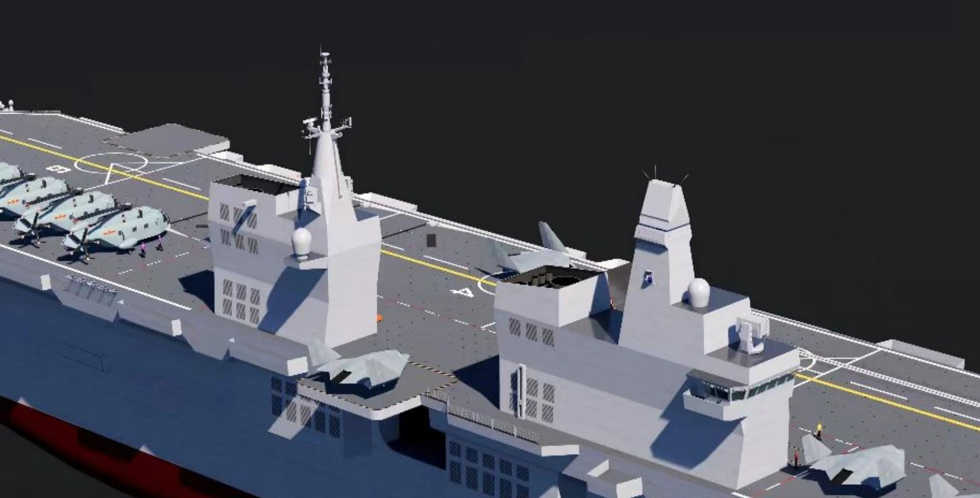当然双舰岛布局设计也不是没有缺点,跟单舰岛对比起来。会产生相对更多的乱流,甚至可能对舰载机起降都有一定的影响。所以除了带英的正规航母使用双舰岛之外,中美正规航母都是采用单舰岛的布局设计。所以076可能不会单独用于远洋作战,更大的可能是给咱们的正规航母打辅助。而076采用双舰岛设计我想还有一个原因,也就是为了更好的满足于安排一套性能水平更高的雷达、电子战、通信系统等。因为076做出来服役之后的战斗力如何,关键还得取决于这几项指标。比如舰岛等雷达水平、起降效率、舰载机搭载数量、舰载机的性能水平、配备的导弹。