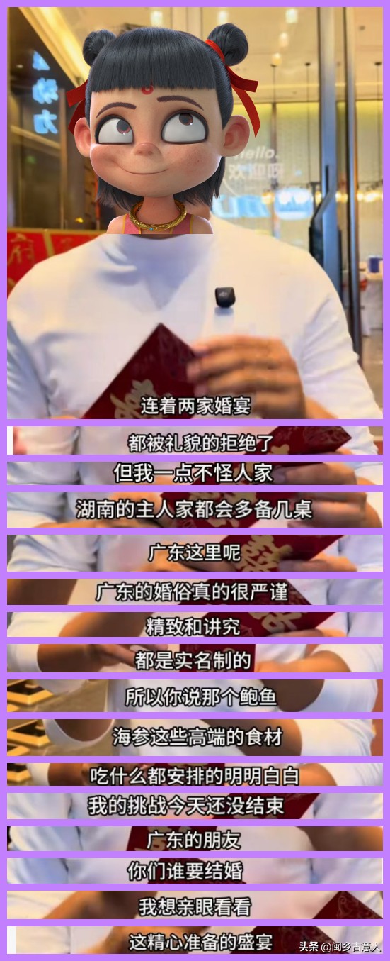 在视频最后他也向广东那些想结婚的朋友喊话,有办婚宴,邀请一下他,让他也感受一下,当地的婚宴习俗!