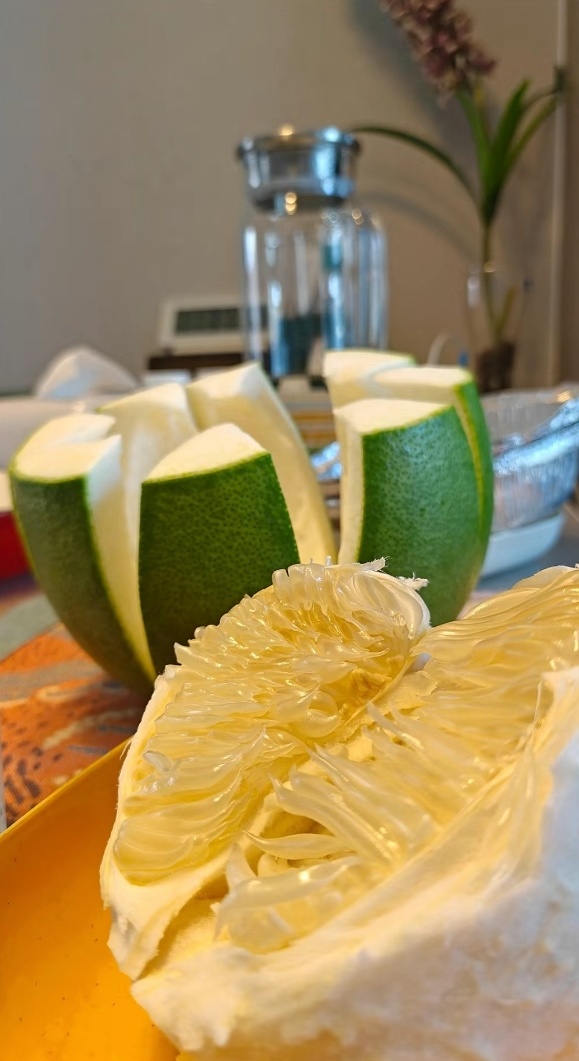 吃完柚子,柚子皮别急着扔,可以做成蜜饯或放入冰箱除异味。柚子瓤可以糖渍成小吃,果肉除了直接吃,还能做沙拉、榨汁。一颗柚子,从皮到肉都能物尽其用。