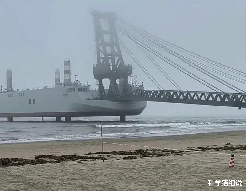 的确,虽然大家都在热议,但并没有谁知道这是用来干什么的,但它的状态,给人一种感觉就是——具有临时栈桥的功能。