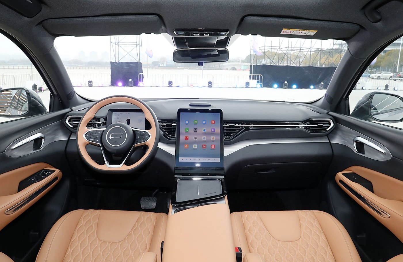进入车内,记者发现悦意07采用环抱式“如意座舱”设计,中控台为经典的“T”字形布局,包括“8英寸全液晶仪表+12.6英寸竖置中控屏”。车内还配备32色氛围灯和双色拼贴方向盘。而得益于语音大模型加持,该车可实现全场景智能化可见即可说,全语音链路毫秒级响应,最多支持15道连续指令。