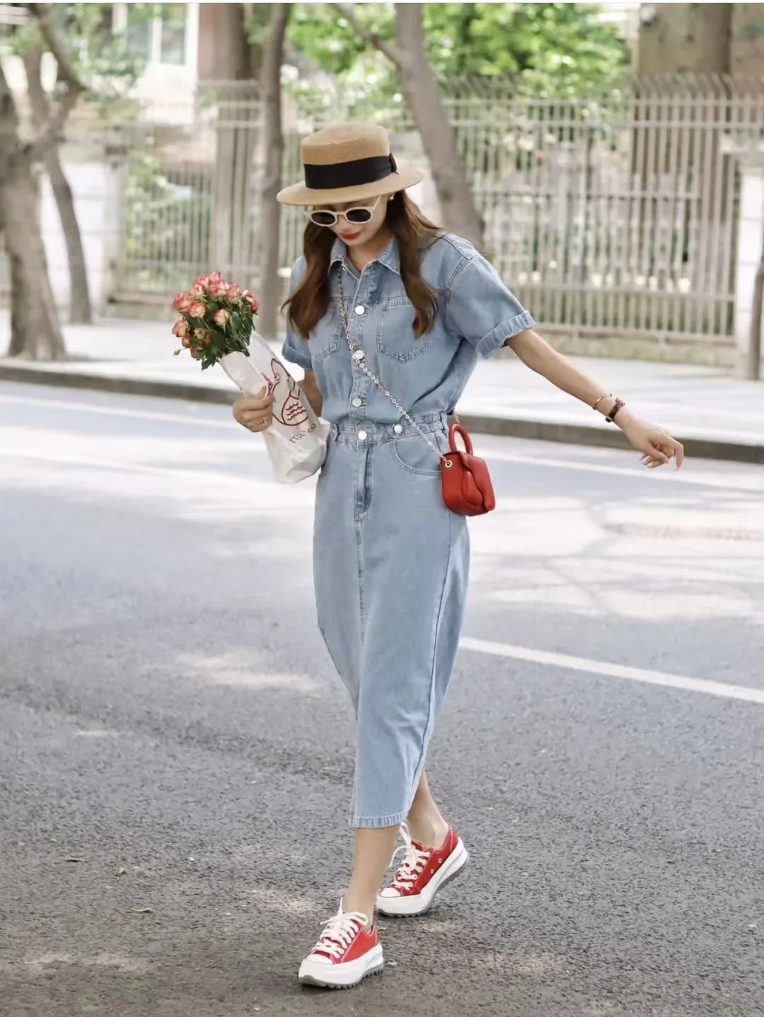 搭配一双运动鞋或休闲鞋,再挎上一个亮色系斜挎包👜,就能轻松打造出【复古又时尚】的风格。