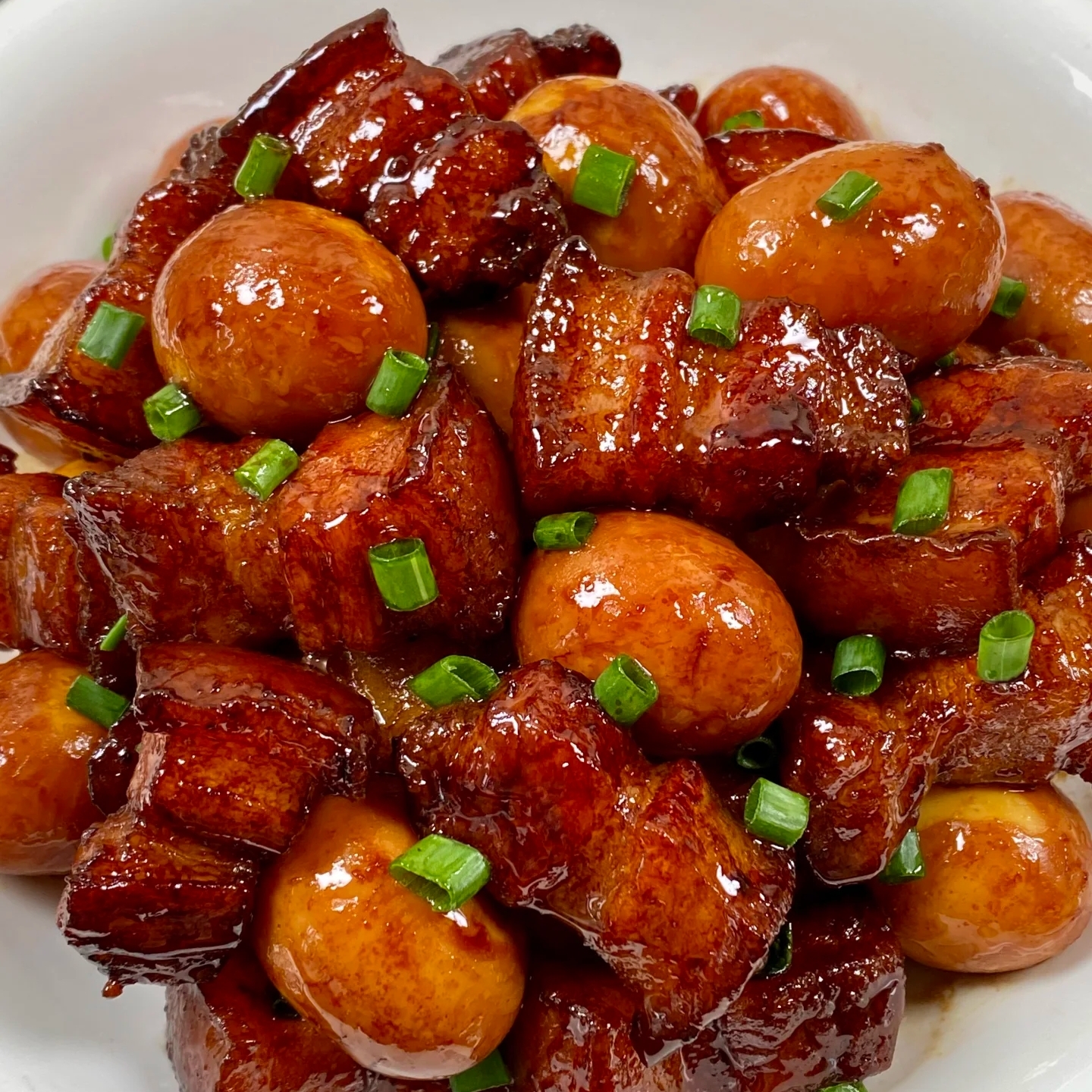 刚出锅的红烧肉颤巍巍地泛着油光,夹起一块抖三抖,肥肉部分像果冻般duang duang晃动~咬一口,酱香裹着肉香在嘴里炸开,鹌鹑蛋的蛋黄吸饱肉汁后沙沙糯糯,蛋白部分却带着虎皮的焦香。配着粒粒分明的米饭,连我家不爱吃饭的娃都主动添了第二碗,最后连盘底的酱汁都被娃爸刮干净拌了面!