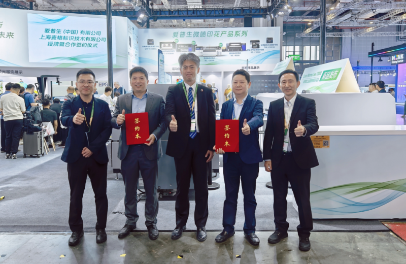 而后,爱普生(中国)有限公司与上海麦格标识技术有限公司举行了隆重的授牌暨合作签约仪式,并授予上海麦格“爱普生商用生态共创合作伙伴”证书。王金城先生提到,未来,爱普生将携手深耕自动识别技术领域二十多年的上海麦格,跟随标签/标识行业万物互联和IOT技术深度融合的趋势,在水洗唛领域持续精耕细作,共同开发基于桌面彩色标签打印机和RFID技术相结合的新方案和新应用。