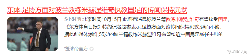 但是根据国内媒体《东方体育日报》透露,尽管足协对国足新帅人选保持沉默,但是米赫涅维奇目前最接近国足帅位,该媒体同时透露,足协已经与米赫涅维奇已经进行了长达一周的实质性谈判,他目前是头号热门人选。