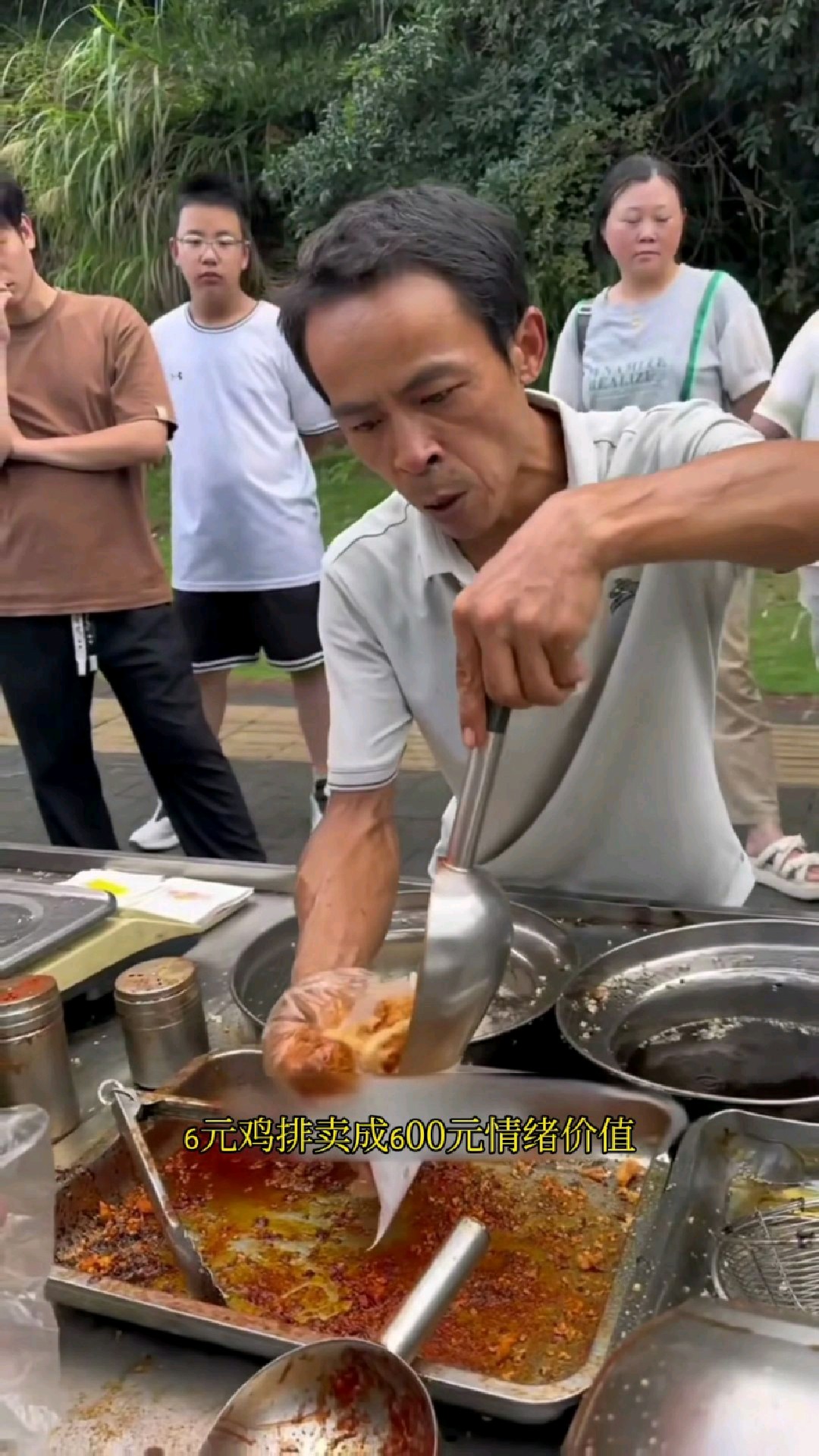 就拿炸鸡排举例,一个城市少说有几十个卖炸鸡排的小摊子,没有任何门槛,而鸡排哥能够突然间爆火,除了确实好吃之外,更主要的是他讲话幽默的风格,“如果你的袋子被风吹走了,我将不会承认收了你的钱”、“希望你给我一次为你服务的机会”,金句频出的同时被众多网友进行了二次创作,搞笑鸡排大叔的人设便由此立住了。