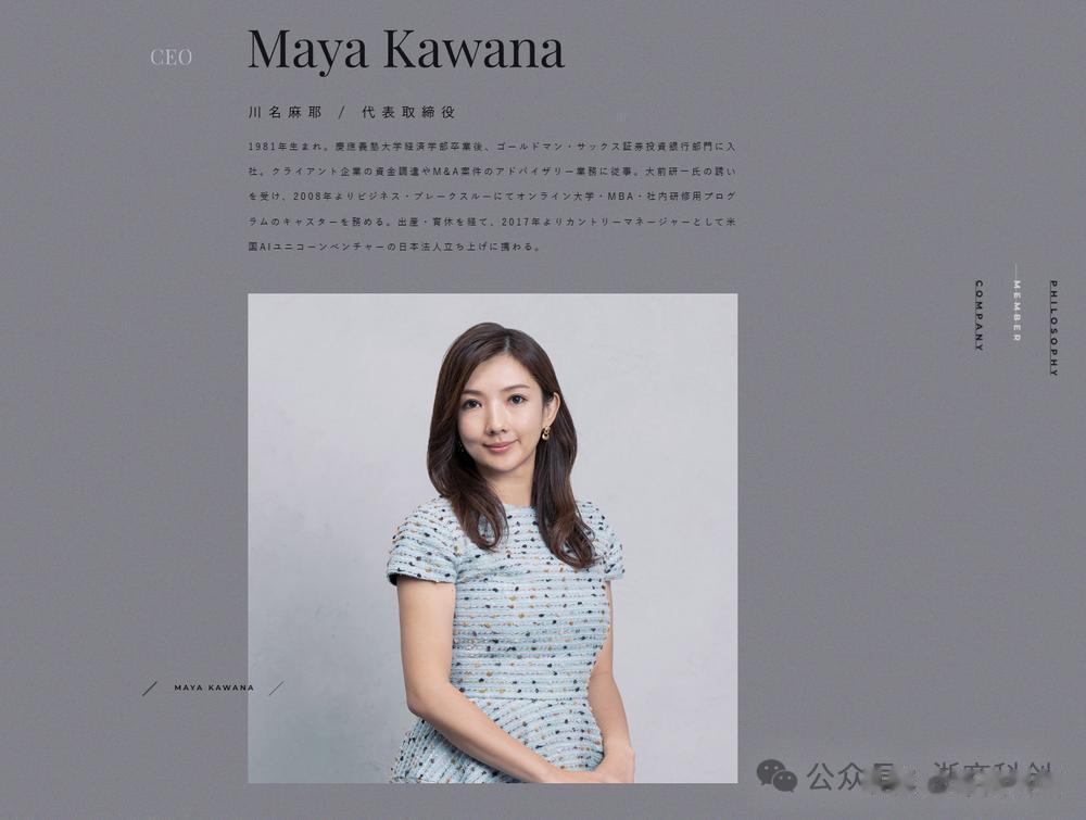 对于这则突如其来的公告,社交媒体上不少网友评论称“履历优秀”、“相貌出众”,也有人好奇“是否像孙正义”。另有网友依据多年前的稀有采访视频指出,川名麻耶与孙正义夫人长相极为相似。需要说明的是,早在本周公开“孙正义长女”身份前,川名麻耶一直以“Bold社长”的身份活跃于创投圈及网络平台。因此,她的个人履历及近年动向均有迹可循。离开高盛后,川名麻耶受知名经济学家大前研一邀请,出任Business Breakthrough培训课程主播。经历三年全职主妇生活后,她因“意识到家务是自己最不擅长的领域”而重返职场,进入创投领域。除自主创业外,川名麻耶今年6月起担任AI营销与D2C品牌公司Ai Robotics的外部董事。该公司去年9月登陆东京证券交易所成长板,目前股价较发行价上涨两倍。今年初,她还开始担任运营建材样品交易平台Material Bank Japan的外部董事。