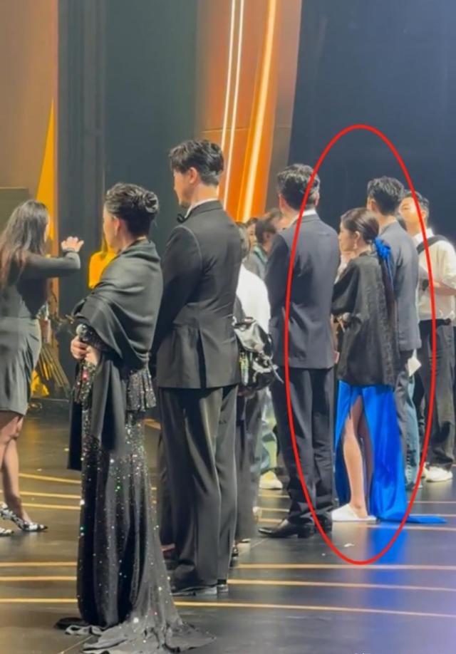 一点站相都没有,放眼望过去,只有她一个人仪态这么差,把活动现场的后台当成自己家卧室了。