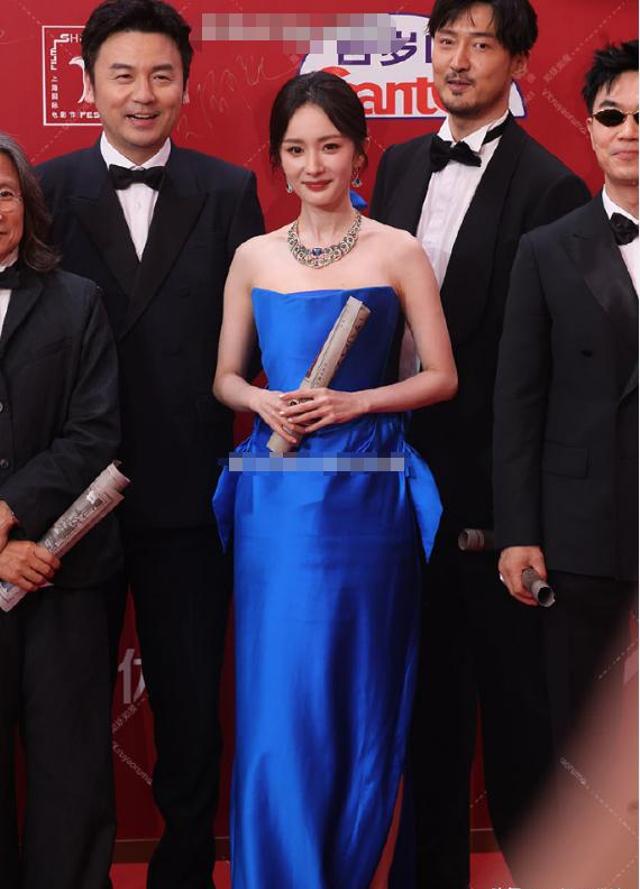 杨幂一身蓝色的抹胸长裙获得一致好评,在一群黑压压的暗色礼服里,她的蓝色冲出重围,成为一抹很耀眼的存在。