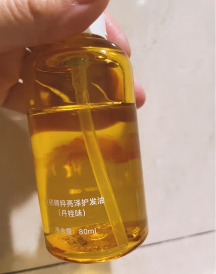 它的使用感受放在秋冬算亮眼,前两天北方突降温,外面刮大风,我扎马尾走了半小时,回来拆开发圈竟然没乱成草窝。之前染过的地方也不像以往那么飞小毛。但必须说,如果你指望它一整天防静电,可能期待太高,尤其是穿羽绒服的时候肩上还是会噼啪响。不过比起别的精油撑不过半天,这个至少维持了核心区的平整度。技术上看它加了双极性成膜剂,内外都照顾到了。