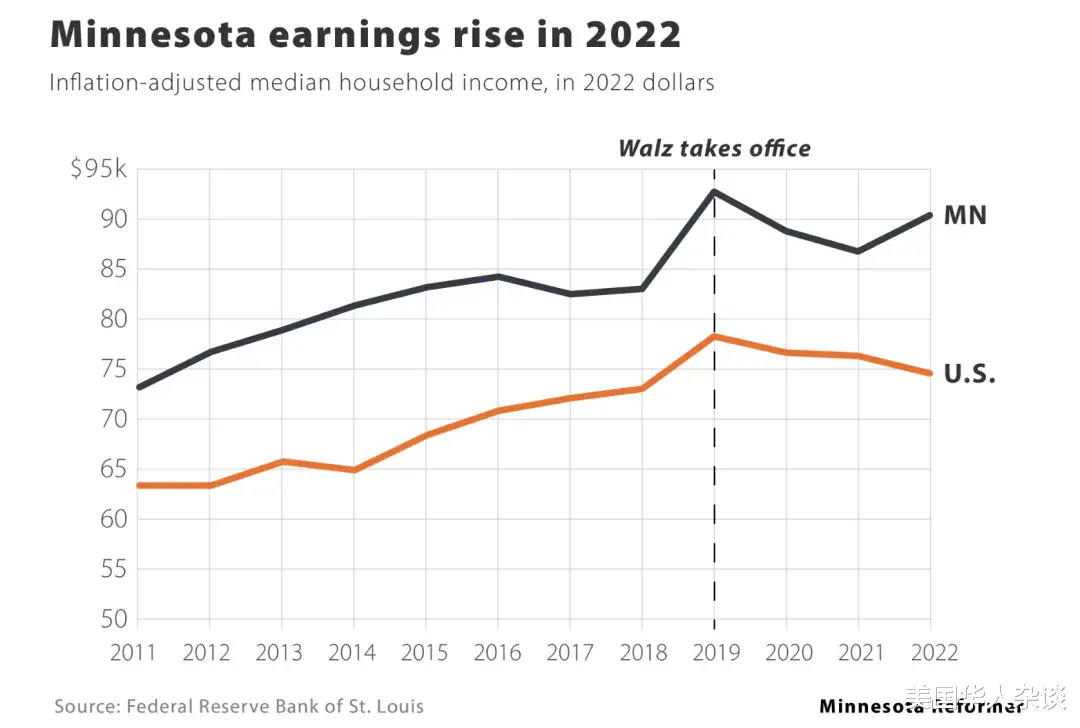 2022年,沃尔兹在浅蓝的明尼苏达轻松赢得连任,帮助民主党迎来了自2014年以来首次完全控制明尼苏达州立法机构的局面。在他治下,明州的经济继续增长,明州人的收入远高于普通美国人。