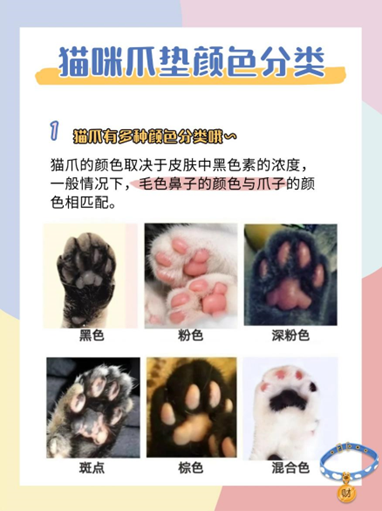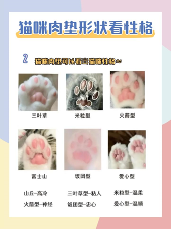 三花猫、玳瑁猫等花色选手,甚至会有粉黑相间的花肉垫,每一只都是独一无二的存在~