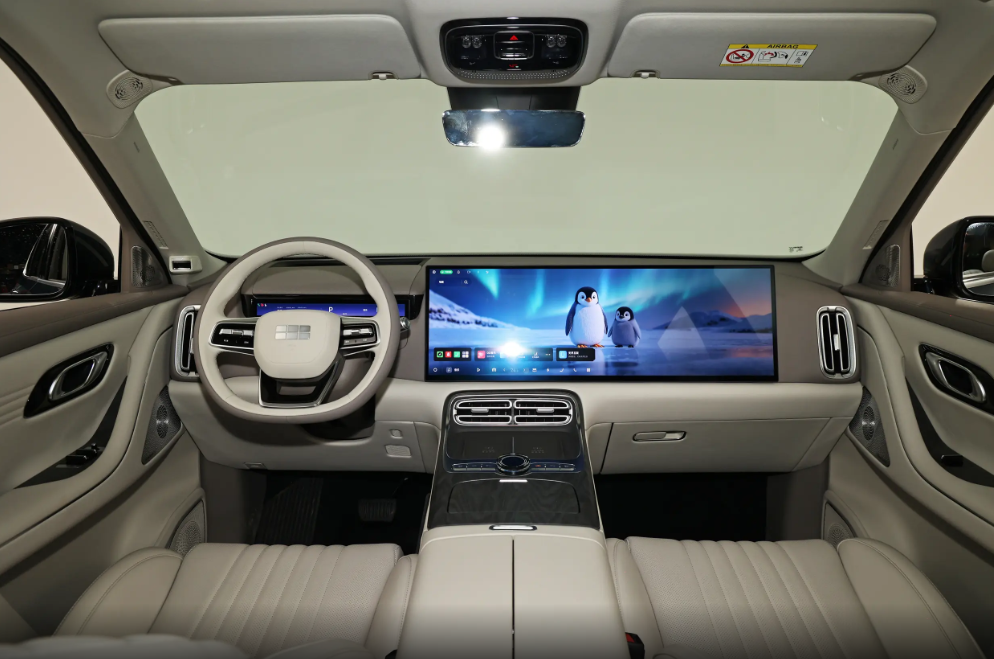 从座舱内部的设计来说,吉利银河M9也是一款兼顾实用性与科技感的车型。与市面上的竞争对手相比,这款车型的中控台上搭载了30寸的6K高清双联屏(顶配与次顶配版本),看起来科技感很强。它搭载的液晶仪表仅12.66英寸,但是为用户提供32寸的AR-HUD抬头显示系统(顶配与次顶配版本),既能保障驾乘人员的出行安全,也进一步提高了整车的科技感。为了让后排乘客得到优秀的智能化体验,吉利银河M9还有部分车型为后排乘客提供了娱乐屏,并且支持无麦K歌等功能,配置表现在市场上处于较为优秀的水平。