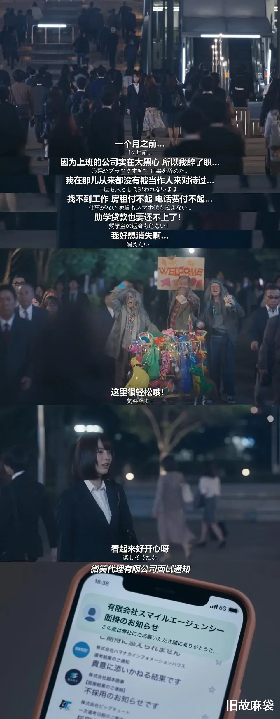 为了逃离无良上司的魔爪,她辞职了,但求职之路迷茫,屡屡碰壁,找不到工作,付不起房租,付不起电话费,伽菜子站在人来人往的街头,只剩下焦虑与挫败感,本来都做好最坏的打算,想着干脆去捡破烂当乞丐算了,结果命运之神降临,一家叫微笑的代理公司抛出了橄榄枝,向她发来面试邀请。