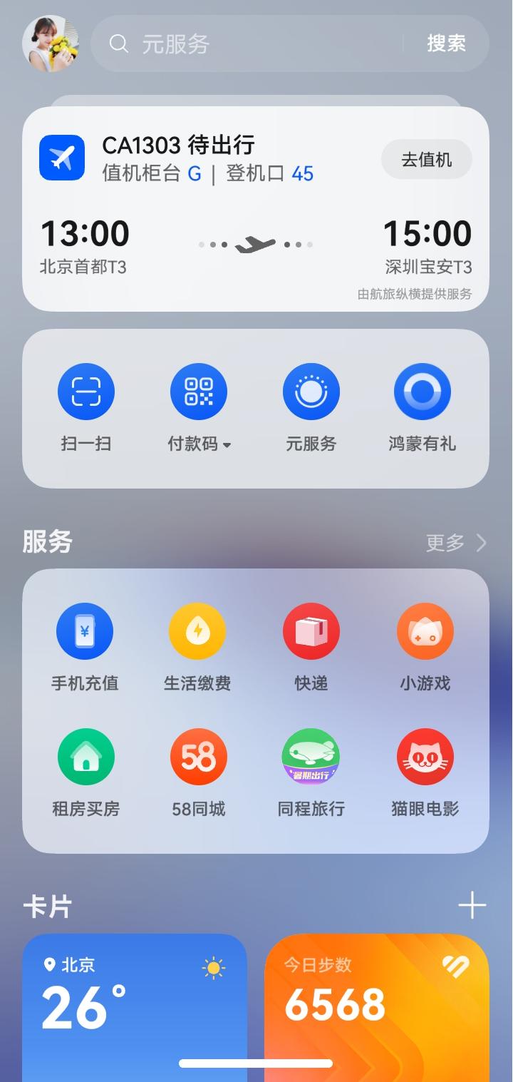 除了畅行无忧卡,华为负一屏也为我的旅行提供了极大便利。只要在手机主界面右滑,就能打开“出行管家”视图,火车票、机票、酒店订单等信息全部以服务动态卡片形式清晰呈现,完全不需要在多个App之间反复跳转。还能在负一屏用元服务点杯瑞幸、上猫眼买张电影票,非常方便。