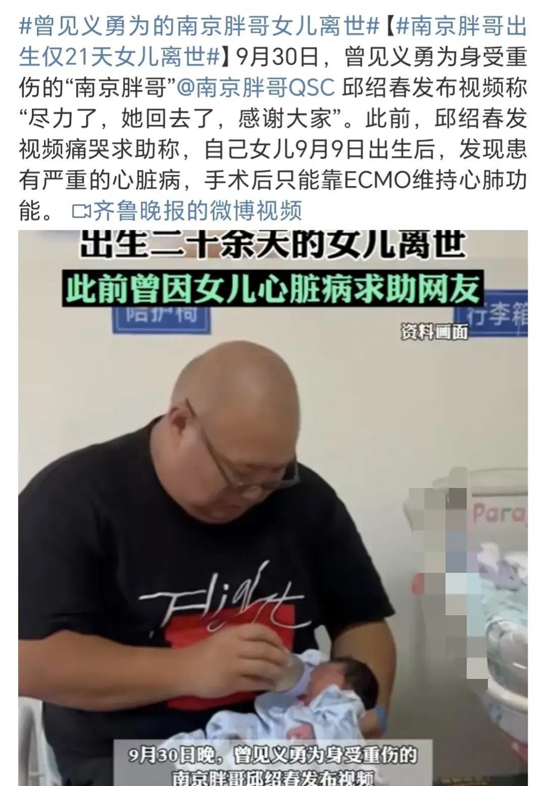 2021年,南京胖哥在新街口见义勇为被捅伤,为此还失去了肛门功能。值得庆幸的是,他在2023年一月和相恋多年的女友结婚,却在九月的最后一天,失去了刚出生不久的女儿。