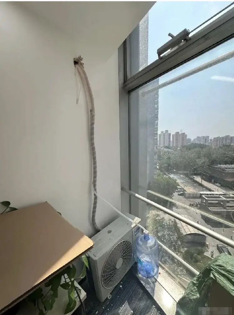今天在办公室直接开眼了——空调外机居然装在室内!