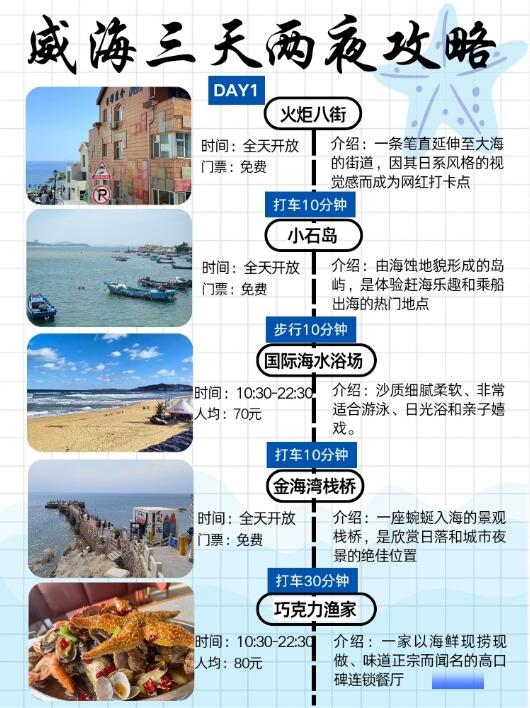 姐妹们👫,刚刚从威海回来❗️国庆3天2夜就能玩得很尽兴!给大家分享一个不走回头路的懒人版攻略,有需要的姐妹赶紧码住出发吧🚗!