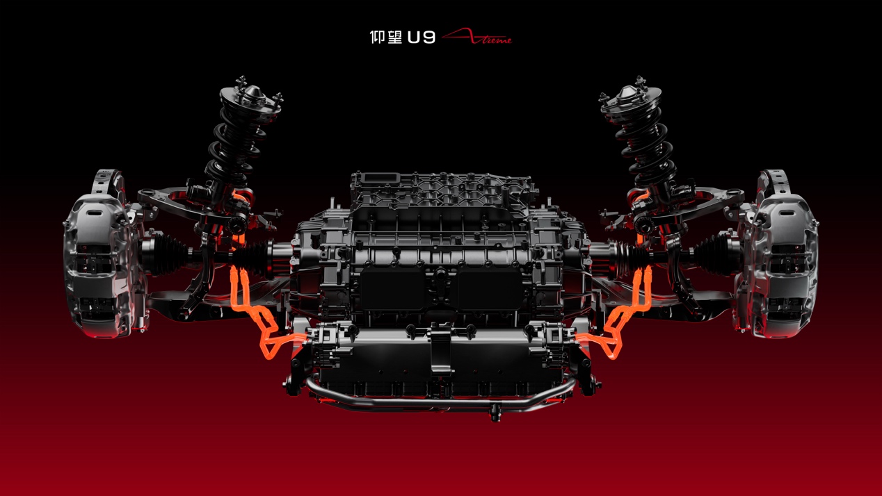 性能方面,仰望U9X搭载全球首个量产全域1200V超高压平台,配备四台转速高达30,000rpm的高性能电机,采用高强度航空铝壳体、高速轴承及970MPa超高强度转子等尖端材料,整车综合马力突破3000Ps,推重比高达1217Ps/t,多项核心指标均达世界顶尖水平。在此基础上,U9X延续并深化了“易四方+云辇-X”技术架构,创新性地将“车身姿态控制”引入赛道场景,不仅突破传统物理极限,更实现了极速性能与弯道操控的完美融合。
