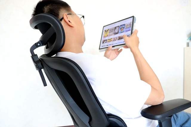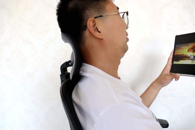 其中的头枕可3D调节,头枕高度可上下调节,最高8CM,适用与不同的身高人群;角度可在40°内调节,这样无论什么姿势,都能找到一个舒适角度,工作之余,往后靠一靠,颈椎自然贴合在头枕上,让颈椎得到充分的放松。