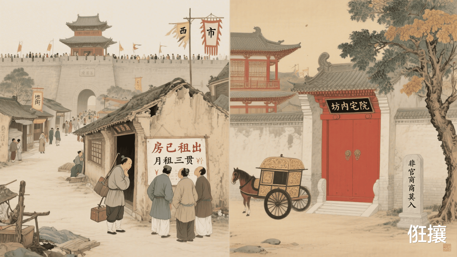 但明清也有突破性的制度设计,租房者子女可 “就近入学”,与房主子弟享有同等教育权,这种 “租售同权” 理念比现代某些城市更为开明。乾隆曾强制官员在任职地买房,否则不准升职,却闹出知县调任时房产滞销亏半年俸禄的笑话,暴露了行政干预住房市场的局限。