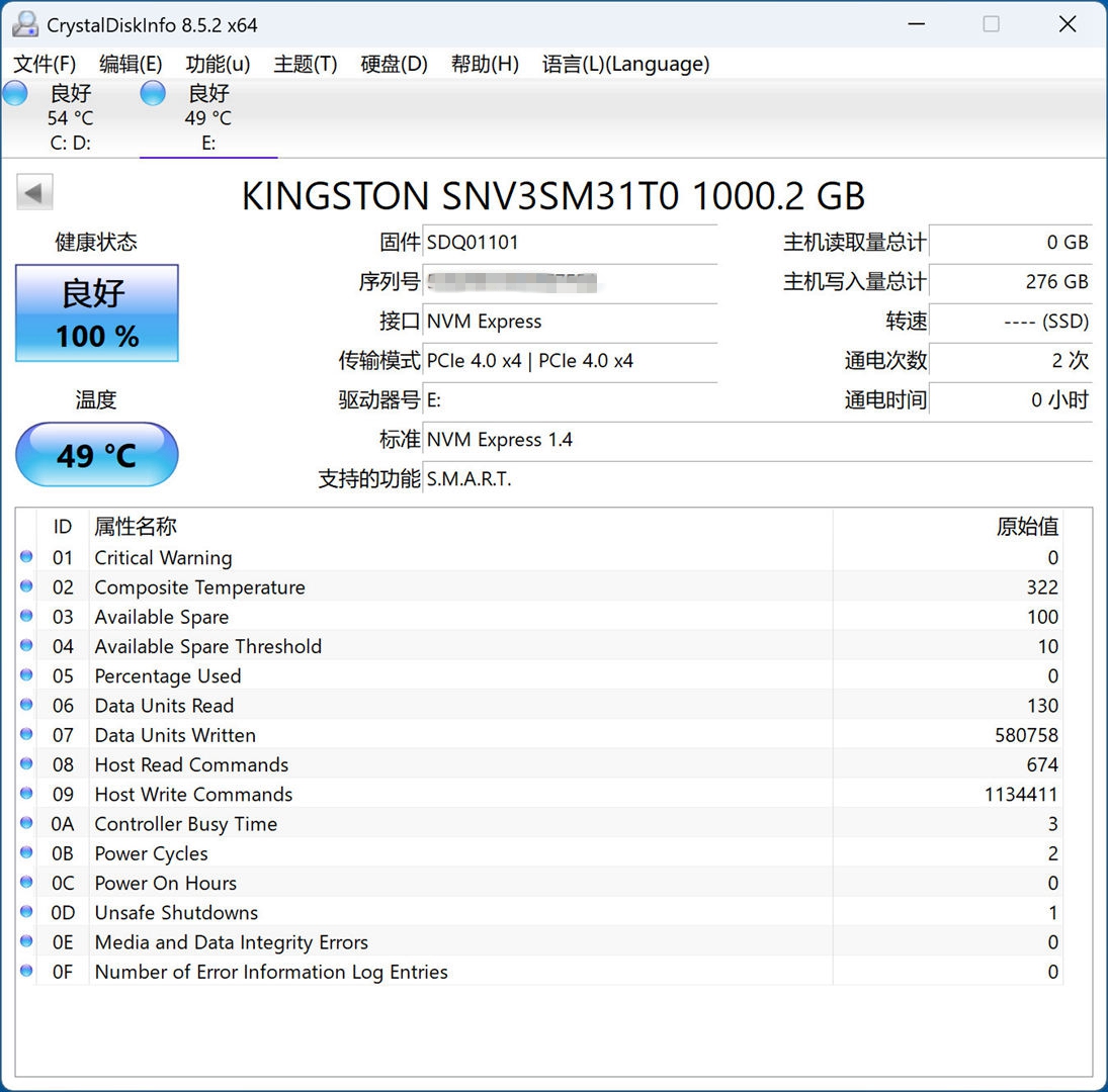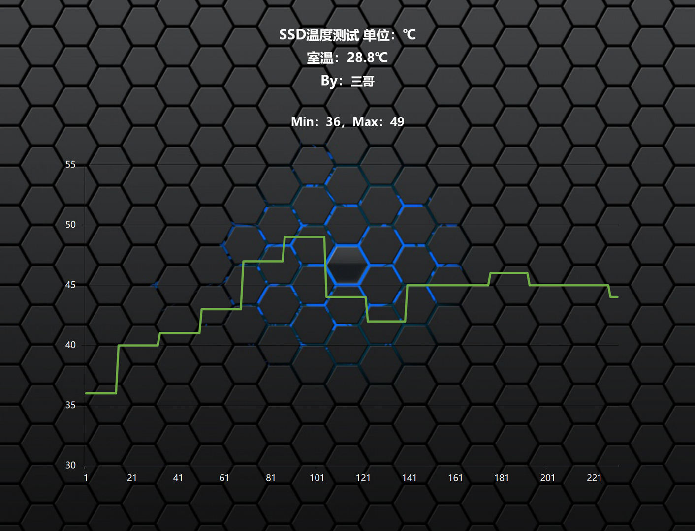 可以看出,NV3在安装到移动硬盘盒子里进行测试时,最低温度为36℃,最高温度为49℃,考虑到现在是三伏天,这个温度表现还是非常不错的。