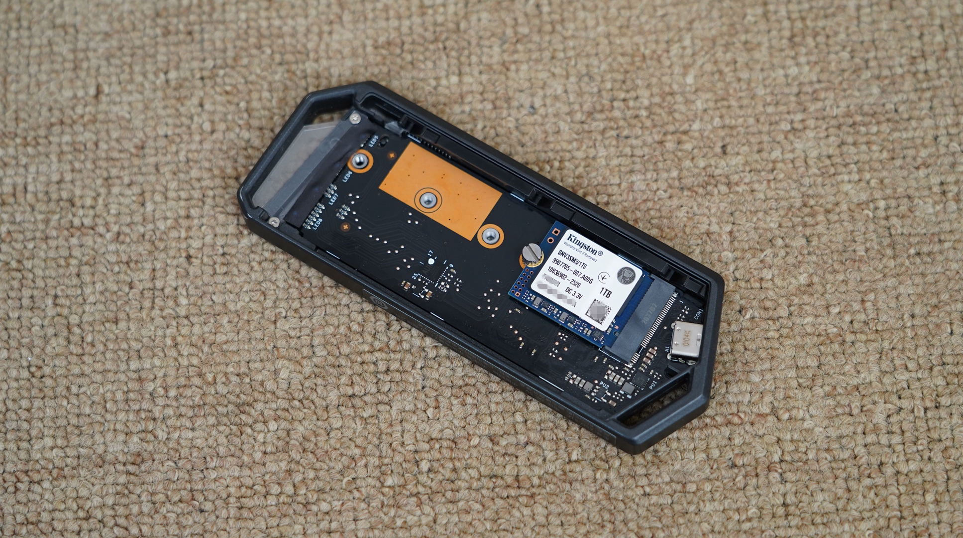 由于Kingston NV3 2230 1TB的体积优势,可以用它来组装Mini移动SSD,不过本人网购的移动硬盘盒子还在路上,所以这里先用手头的普通盒子演示一下。