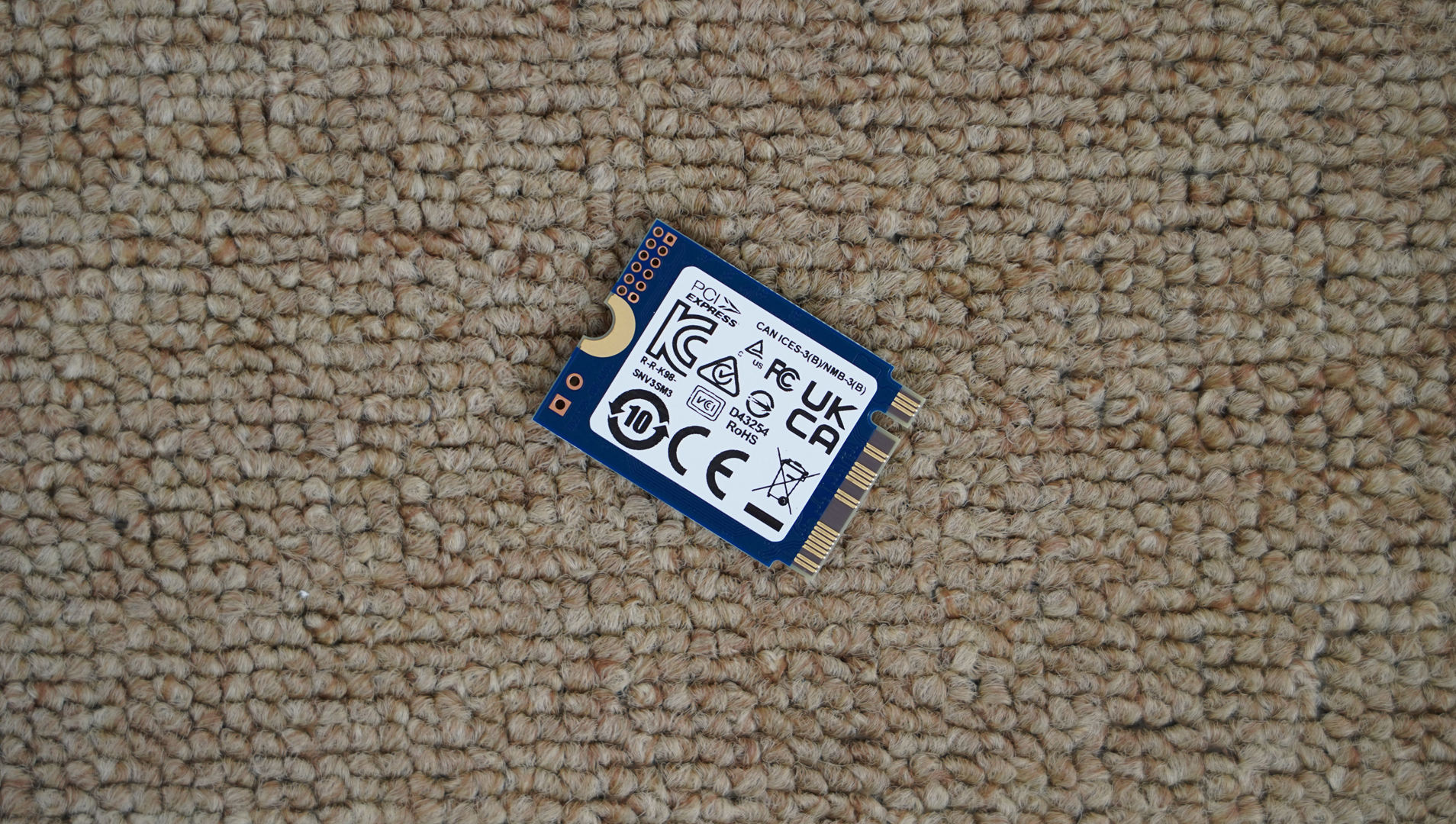 SSD采用了2230长度规格设计,体积非常小巧,其正面贴了一张贴纸,上面印有产品的参数信息。