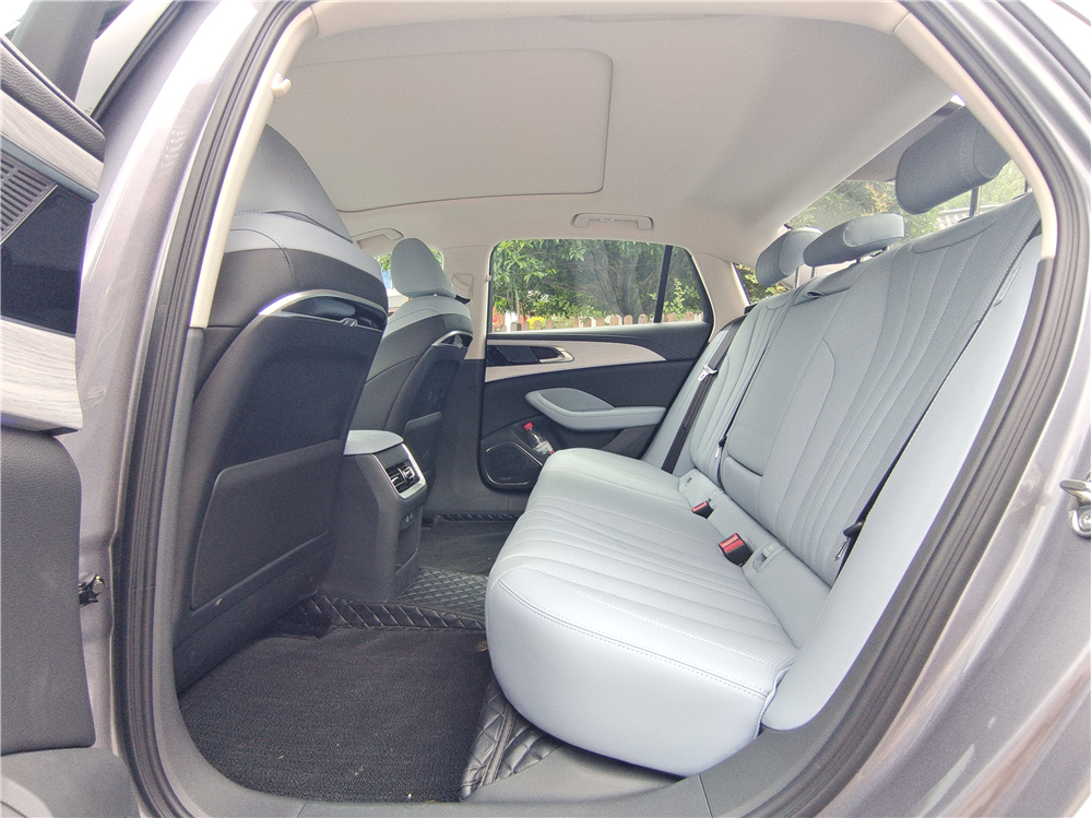 乘坐体验也给我们留下了深刻的印象,红旗H5 PHEV的车内用料下足了成本,大范围软性材质和皮质材料让视觉效果和身体触感都达到了同级领先。近5米车长、2920mm轴距使得腿部、头部空间非常宽裕,媲美中大型豪华轿车的奢适感;几乎纯平的后排地板不会让中间乘客感到拘束,满座出行也能惬意自在。座椅则采用了打孔皮质包裹并针对插电混动特性优化了填充结构,有效改善长途乘坐的舒适性。全景天窗、双区自动空调及前排座椅加热等配置进一步丰富了整车的舒适性体验。