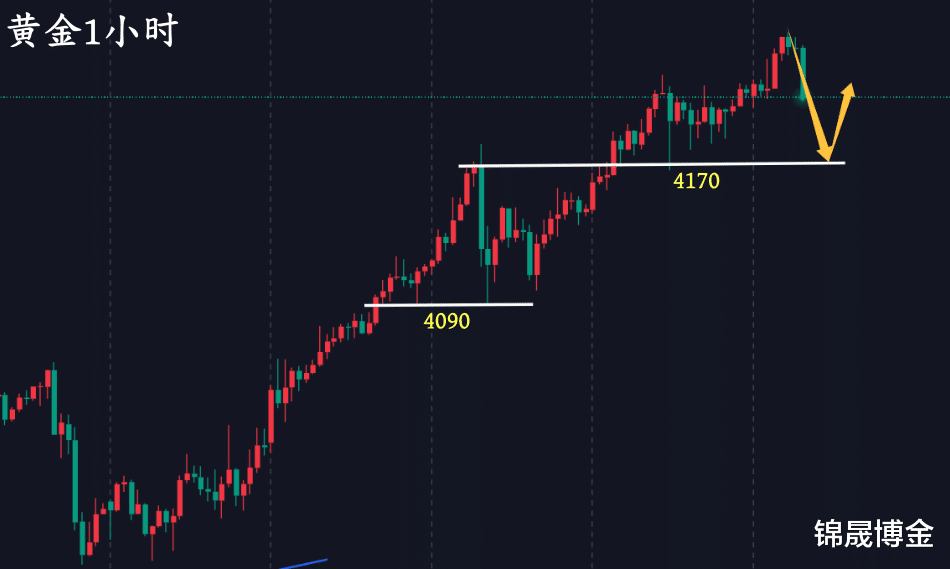 要关注的是回踩位置,在什么位置可以去接多,而不是追空。4090是382位置,也是双底支撑结构,毫无疑问是要看向上的。昨天也是如此,在欧盘出现一个快速下跌,顶底转换位重合382回调位,还是看向上。