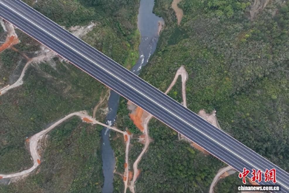 项目总投资超392亿元,双向六车道标准建设,设计时速100公里,全程桥隧比高达50.11%。简单说,每走1公里,就有半公里在过桥或穿隧道,光是六硐隧道就长达4050米,建设者们平均每50米就要攻克一个溶洞,难度堪比在“海绵”里修公路。