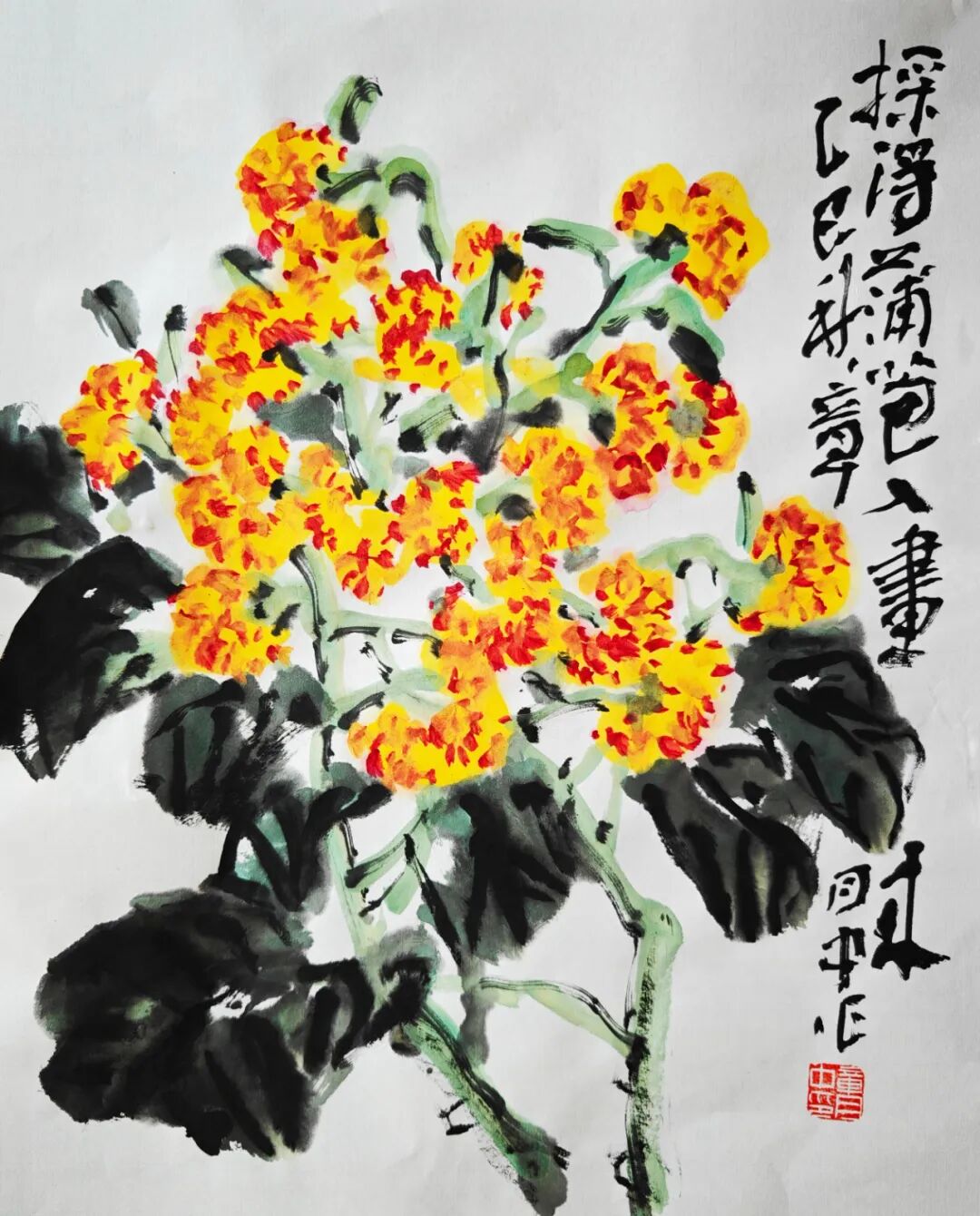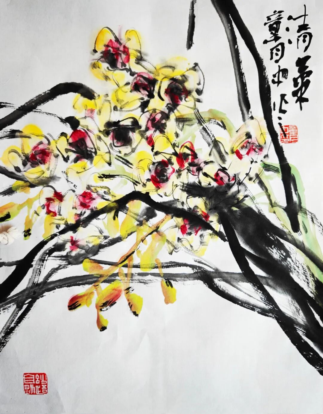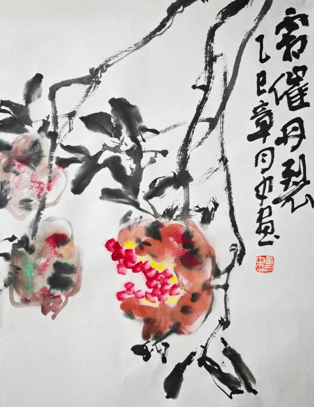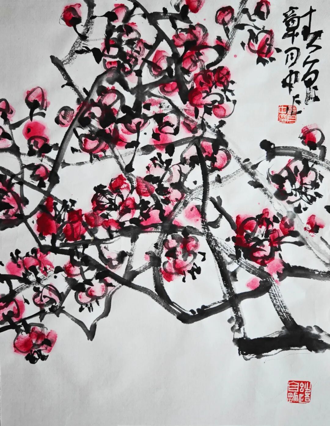 2021年《红遍千山》入选庆祝中国共产党成立100周年浙江省百幅花鸟画展。