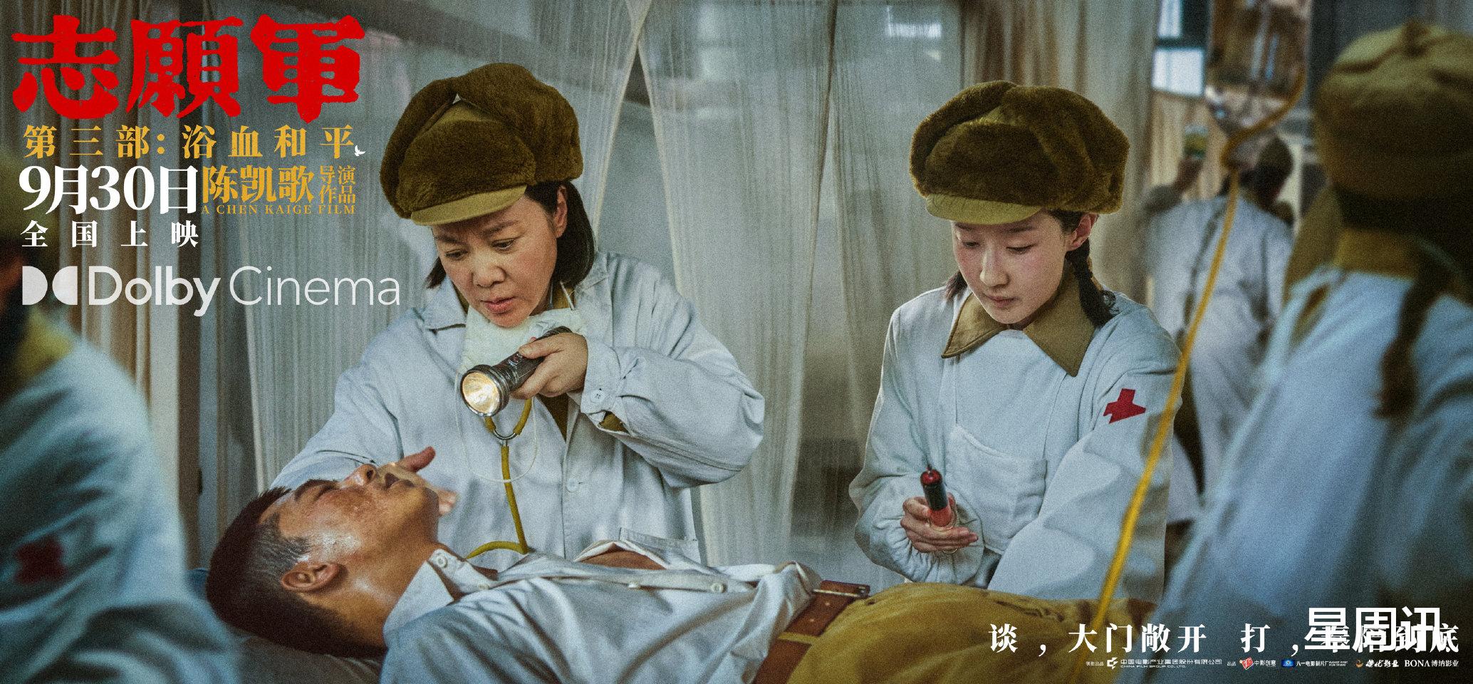 从剧本筹备至今,《志愿军》系列的制作周期长达五年,全景式记录了抗美援朝从出兵作战到最终迎来和平的峥嵘历程,观众也透过光影,与一个个英雄角色相遇、告别。《志愿军:浴血和平》“边打边谈”的全新战局,呈现了更立体的战争图景,谈判桌、前方战场、中立区、后勤保障……多战线并行诠释志愿军战士为和平作出的贡献与牺牲。《志愿军:浴血和平》中,翻译李晓(张子枫饰)为和平而战,想要与家人团聚;翻译队队长林月明(宋佳饰)祈愿亲眼见证和平到来的那一天;军工专家吴本正(朱亚文饰)誓要替战友张孝恒保护好他的弟弟;姚庆祥(彭昱畅饰)想拍张照片寄给母亲,让她看看自己如今的模样;战士黄继光(周政杰饰)努力练好字想给母亲写封家书……在宏大的战争场面中,这些细微却炽热的念想成为穿透硝烟的光,勾勒出一幅有血有肉的英雄群像。他们既是战士,更是女儿、兄长、父亲、朋友……对亲人的牵挂化作守护“家”的信念,对和平的渴望构筑起捍卫“国”的决心,这些由家至国的力量凝聚,让他们毅然奔赴战场,为国而战,为家而守。